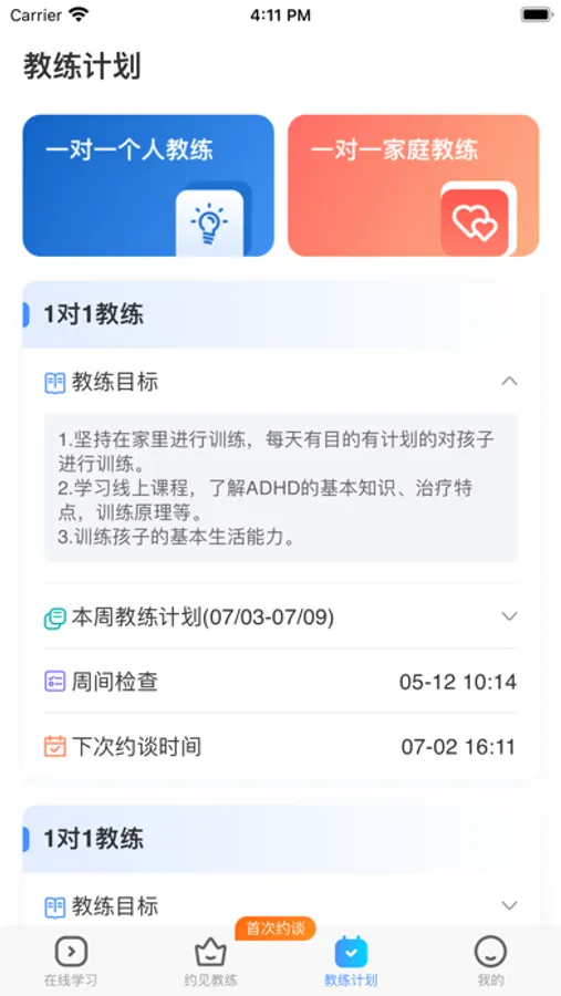 · 一对一ADHD家庭教练