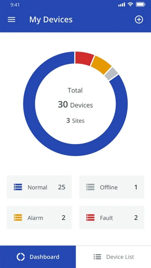 The app acts as a client and provides a view to monitor the status of UPS devices that synchronize data with IoT Cloud server