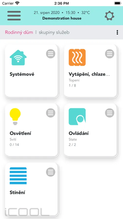 Aplikace je určena pro přístup k systému iCOOL verze 4, který dokáže propojit všechny systémy v domě (topení, větrání, chlazení, svícení, stínění, zabezpečení, měření spotřeby apod.) do jednoho přehledného rozhraní.
