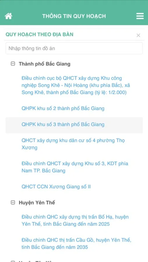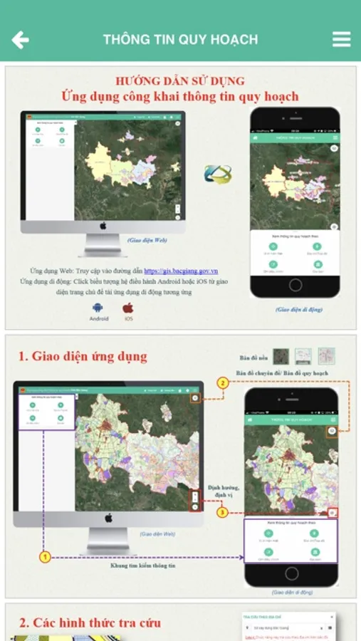 Người dân xem được thông tin quy hoạch xây dựng và quy hoạch xây dựng điều chỉnh tỉnh Bắc Giang bằng SmartPhone theo: