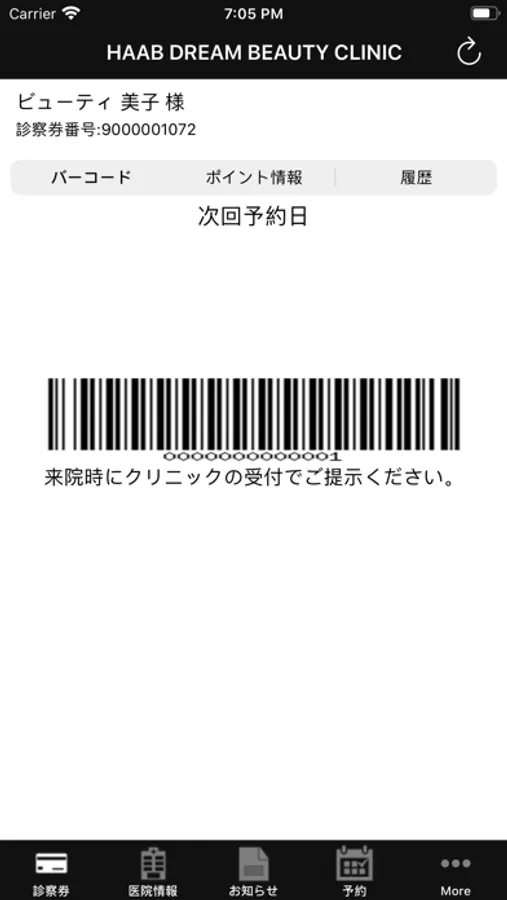 本アプリはHAAB DREAM BEAUTY CLINIC専用の診察券アプリです。