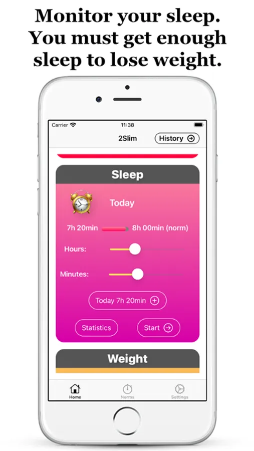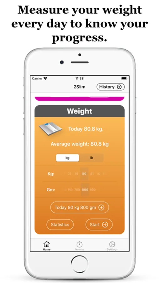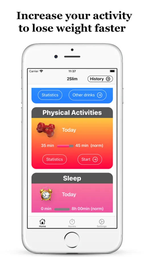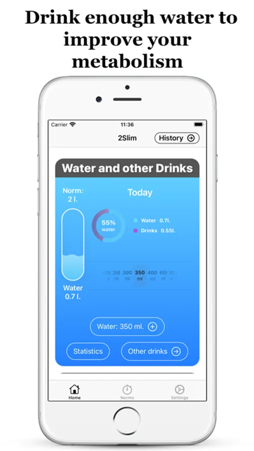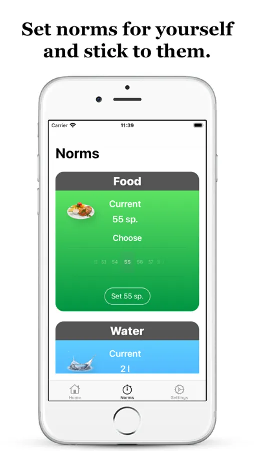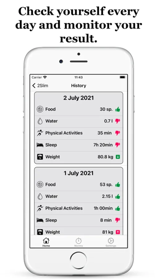 With 2Slim, you can set daily norms to help you monitor with as much accuracy as possible when it comes to tracking what you eat & drink.