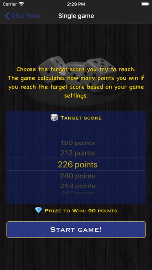- Single game: you can choose a target score to reach.