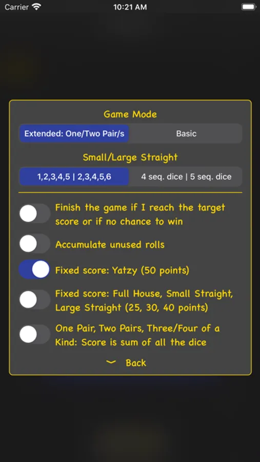 - Choose the meaning of small/large straight (1,2,3,4,5 / 2,3,4,5,6 or four/five sequential numbers)