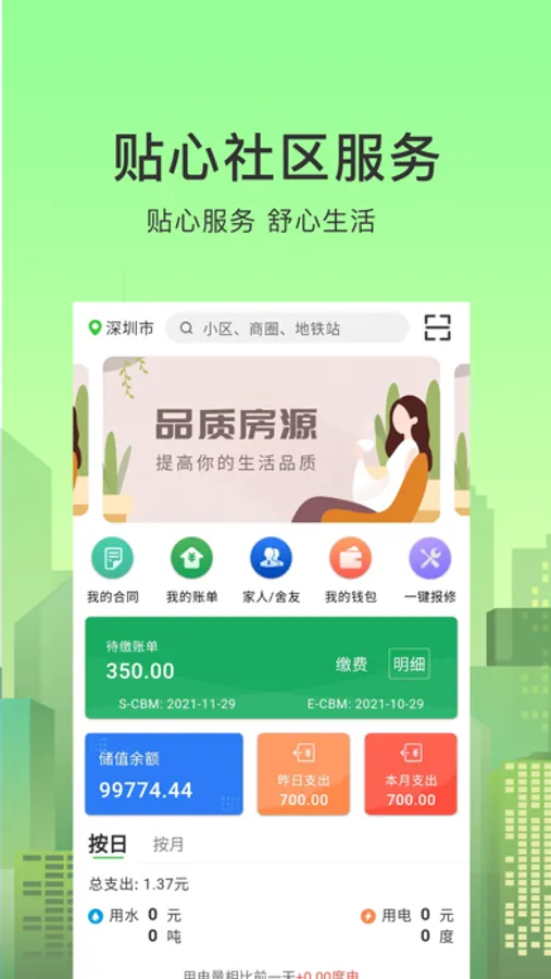 线上管家:在APP即可完成咨询、问题反馈、报修、预约保洁等服务;