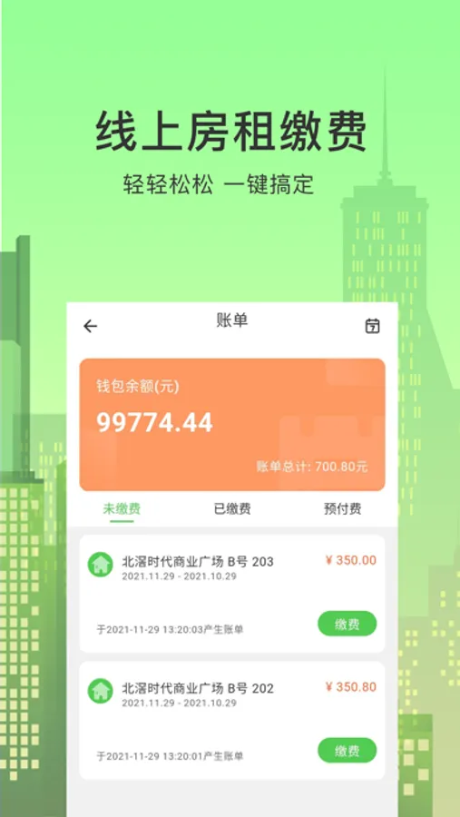 线上付租:线上交付,省时省心,合同到期前,可向租客推送交租提示;