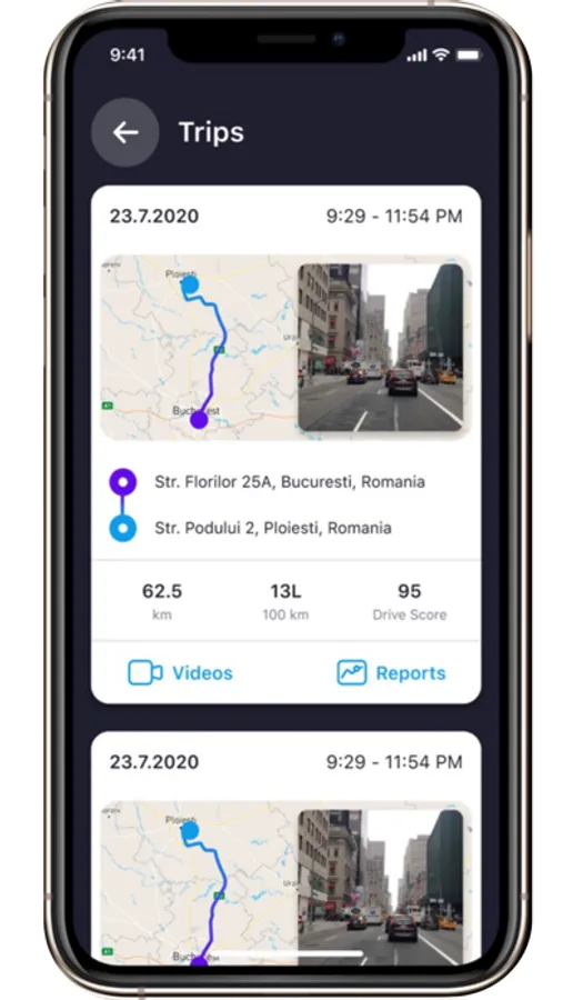 - Trip history with associated videos (if any)