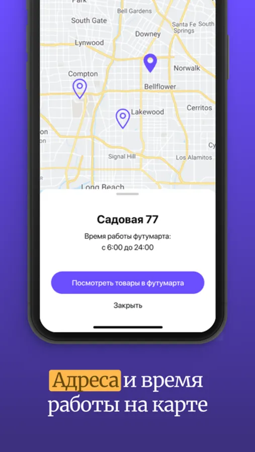 1. Скачай приложение FutuMart и посмотри на карте где находится ближайший к тебе Футумарт.