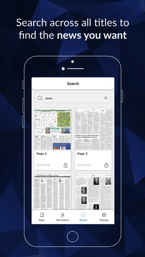 * Tap on articles for easy reading, printing and sharing