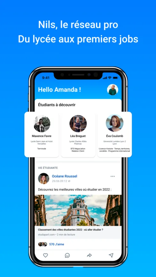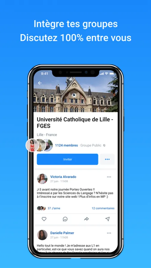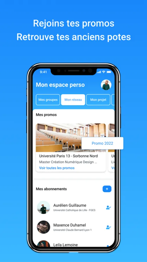 2 - Tu seras automatiquement dans tes différents établissements (lycée, études sup) et plus finement par promo.