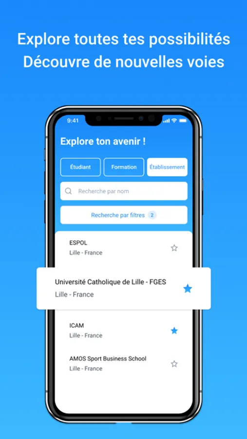10 - Tu pourras mettre en favori des établissements ou des formations qui te plaisent, mais aussi des étudiants aux parcours inspirants.