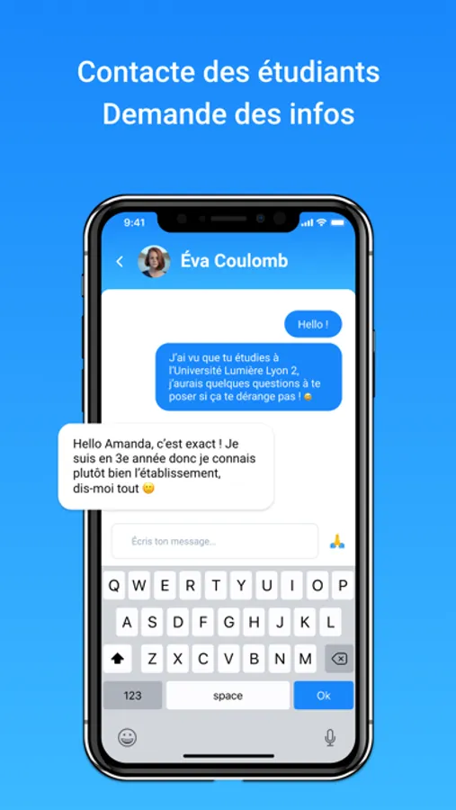 9 - Tu pourras poser tes questions en direct à n’importe quel étudiant via notre messagerie interne sécurisée.