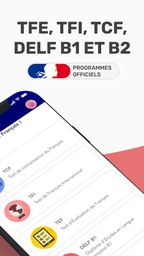 Le Test de Français International (TFI / niveaux A2, B2) mesure et certifie les compétences en français des non-francophones. Il est reconnu mondialement. Il s’adresse à des personnes de tous niveaux et peut être utile pour ceux qui souhaitent intégrer un programme d’études, une formation ou un emploi en France. L’application vous permet de vous entraîner aux 6 sections de compréhension écrite et orale du test.