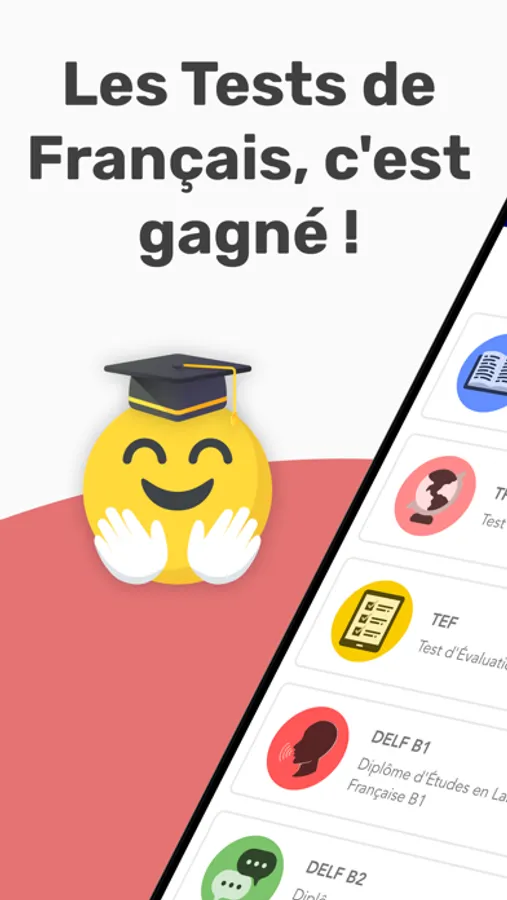 Le Test de Connaissance du Français (TCF / niveaux B2+, révision C1) évalue les capacités linguistiques en français des candidats à partir de situations qui peuvent se rencontrer dans la vie réelle. Les entraînements au TCF proposés ici répondent aux exigences de compétences pour les matières obligatoires : compréhension écrite, compréhension orale et structure de la langue. Le Test d’Évaluation du Français (TEF / niveaux B2+, révision C1) permet d’attester de votre niveau dans tout cadre professionnel, académique, de mobilité, et particulièrement pour étudier en France, obtenir la nationalité française ou la carte de résident français, immigrer vers le Canada ou le Québec. L’application vous permet de vous entraîner aux différentes sections des épreuves obligatoires : compréhension écrite, compréhension orale, lexique et structure.