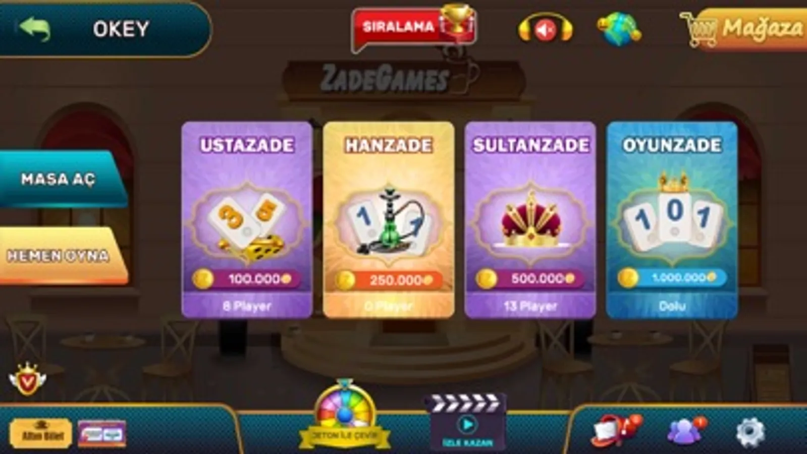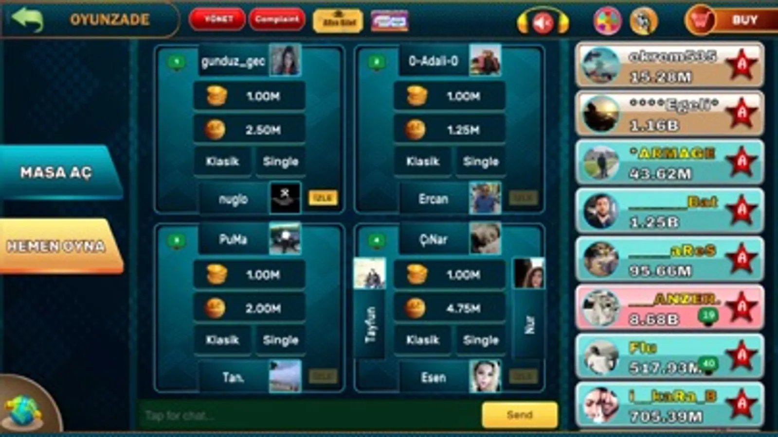 You can join either with your facebook account or your oyunzade.com account. You can widen your social network while playing our game. You can choose which saloon to play the game. You can choose the open table option and invite your friends to the table. You can have private chat with your friends.