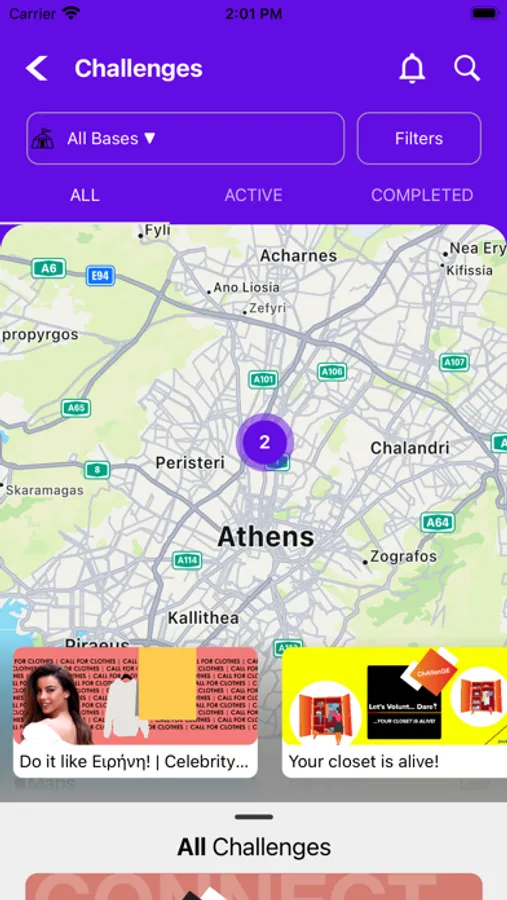 The Connect your City application has been created in order for players to have the opportunity to be active in all the above areas while at the same time benefiting on a personal and social level. A player joins one of the 4 teams according to his personal interests, then chooses between many missions with social, educational and entertainment content, with the completion of which he earns points. Depending on the points, its level rises