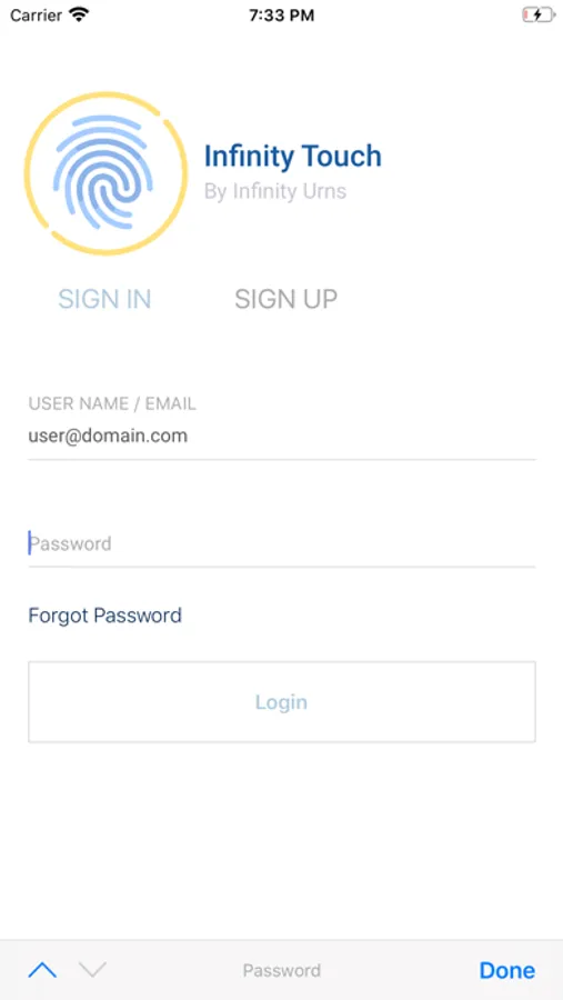 Infinityurns LLC's latest InfinityTouch App is the most simple yet accurate fingerprint capturing app avaiable for funeral professionals and crematories. InfinityTouch App can be used to capture and save fingerprints of the deceased for ordering personalized fingerprint jewelry. The App is designed and developed exclusively for our funeral homes and partners. The App works wirelessly with our wireless scanner to capture and save fingerprints. InfinityTouch App is the new age memorial jewelry that provides a unique personalized touch to the funeral products that we offer. With the state of the art finger printing image capture, Infinity Touch gives you the privilege to capture the real finger prints of your loved ones, so that you not only preserve the memories in your hearts, but also the real touch finger print image of your loved ones in your homes forever.