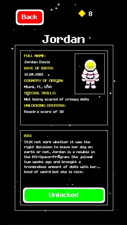 The deeper you dive, the more astronauts will be unlocked. Each with an other story to tell.