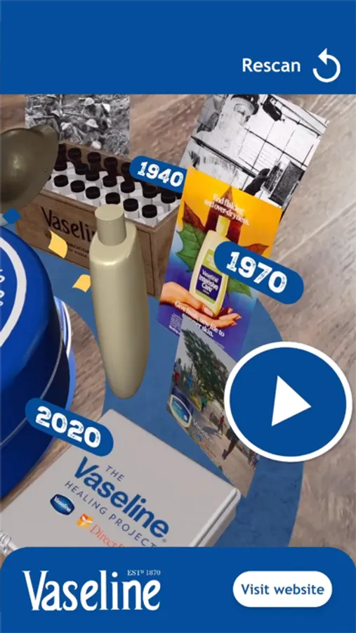 We’re celebrating 150 years of healing with a brand new Augmented Reality App. All you have to do is download this App and scan your limited edition tin to take a trip through 150 years of vaseline healing and have some fun with our 101 Random uses for Vaseline game.