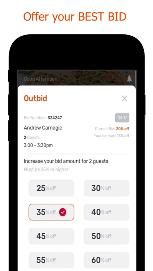 Instead of leaving a printed coupon up to chance, you can be in control. As the customer is watching in real-time, you & another Instabids participating restaurant will be in a bidding process to provide your BEST offer to win that customer over and get the ordering process started.