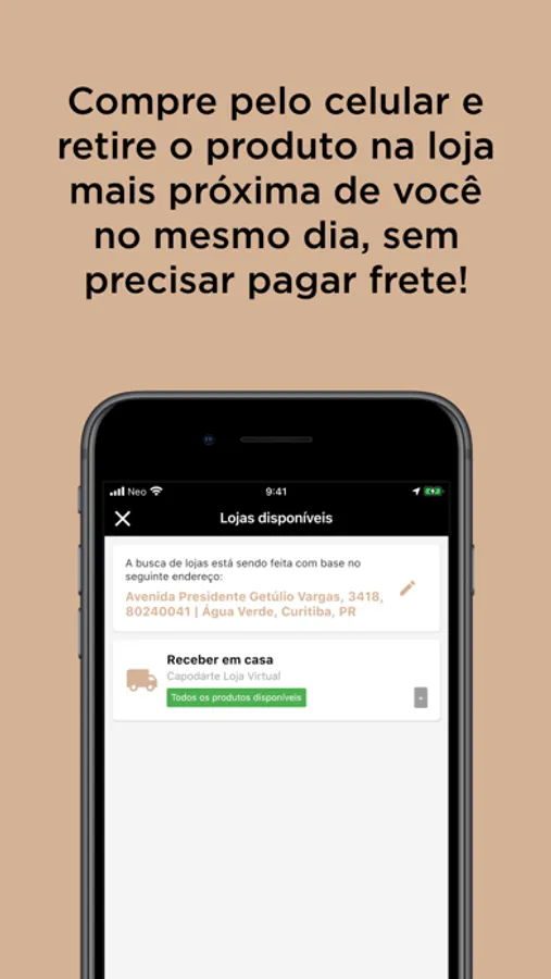 Compre pelo app e retire na loja mais próxima de você, sem precisar pagar frete ou receba o pedido em casa ou no endereço desejado.