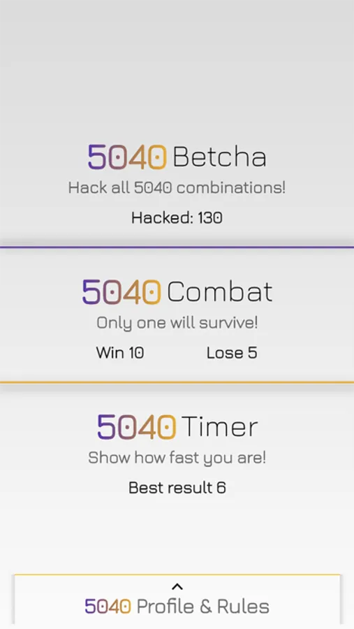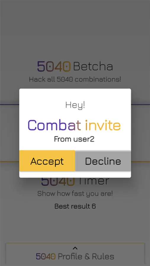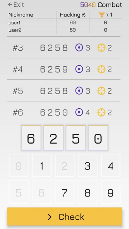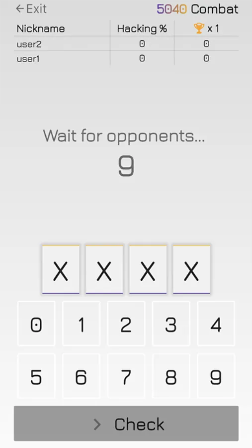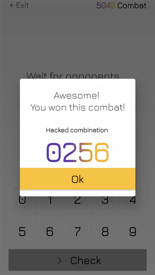 Play 5040 Combat with your friends and family! It's realtime and multiplayer game where you will compete with opponents you invited. Keep your brain ready and hack secret combinations faster than the others.