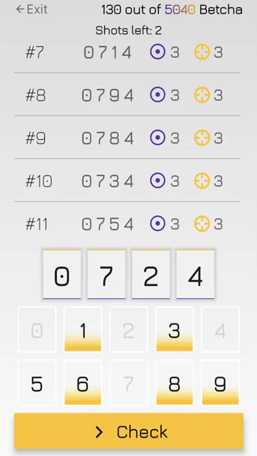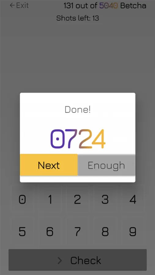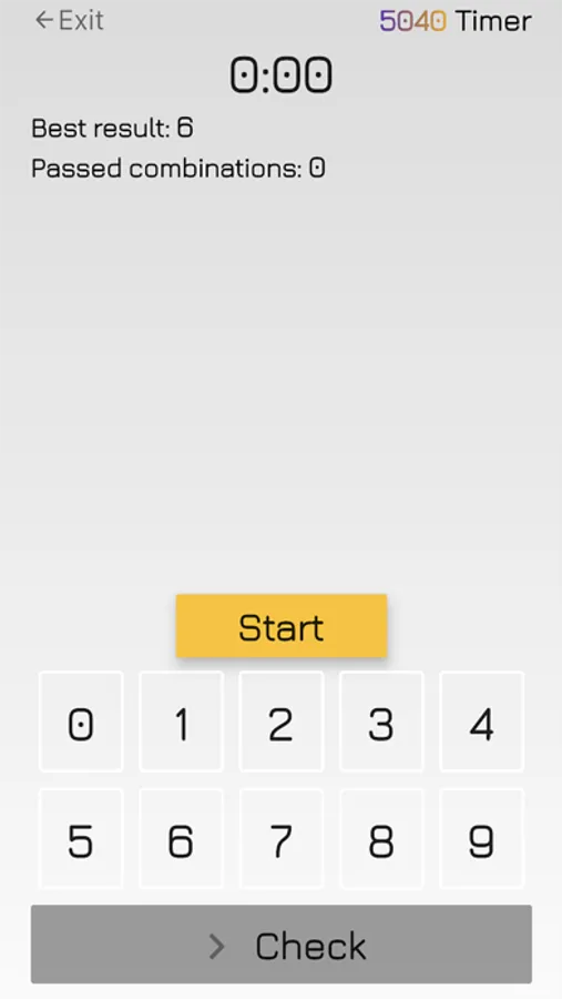 Make good use of your time, and keep your brain ready! You have 5040 combinations to break through. Each level gives you a secret combination of 4 unique digits. All you need to do is to pick digits and place them into combination slots and check your combination.
