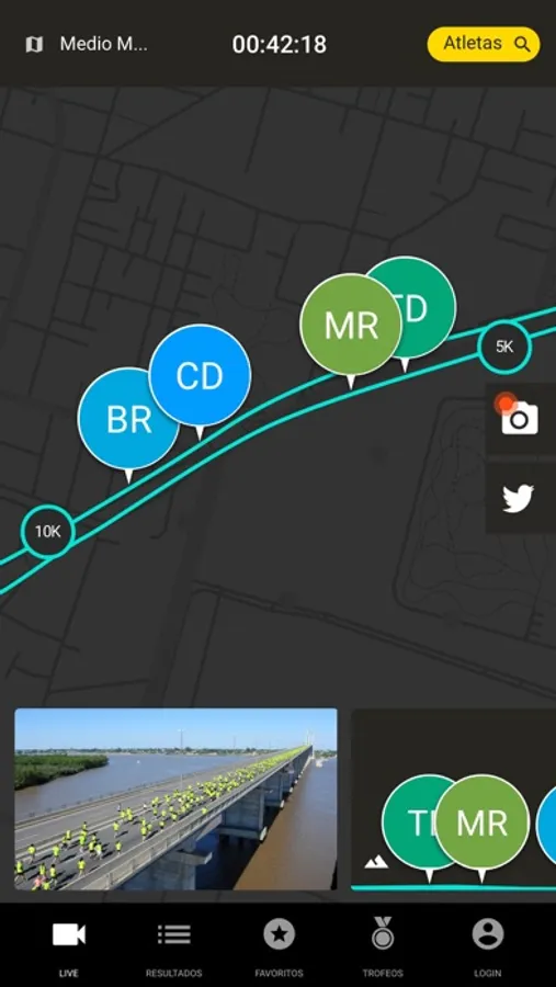 Tuitea directamente desde la app tu experiencia en el evento y sube tus fotos a la galería colaborativa. Sigue a tus amigos o atletas favoritos.