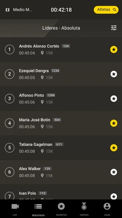 Además, podrás ver de forma rápida cualquier clasificación al instante: por categorías, promedios y el último punto alcanzado de los participantes a los que sigas.