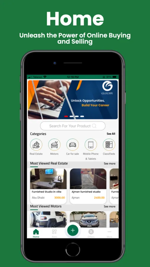 We intended to make “Glouppi” a comprehensive marketplace for shopping Online. So, you can sell and buy Cars, Real Estate, Electrical Appliances and Equipment, Furniture, and Toys, etc through the app.