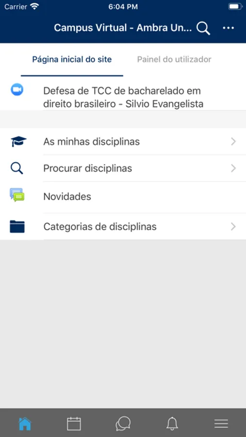 No App é possível acessar disciplinas, entrar em aulas ao vivo, assistir a aulas gravadas, encaminhar trabalhos acadêmicos, enviar e receber mensagens, verificar o calendário e acompanhar notificações da Ambra University.