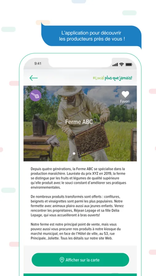 Cette application est l’extension toute naturelle du mouvement Mangeons local plus que jamais! lancé par l’Union des producteurs agricoles pour inviter les Québécoises et les Québécois à consommer de bons produits frais et locaux. Les productrices et les producteurs agricoles du Québec ont à cœur la sécurité alimentaire de toute notre collectivité. Ils œuvrent sans relâche, avec passion, pour nous offrir des produits de qualité, près de chez nous.