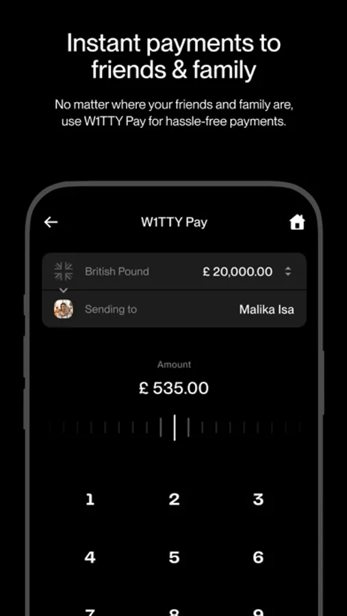 Transferring funds is a breeze with W1TTY; just a few taps. You can rest assured that your money will always arrive in your friends' and family accounts around the world instantly.