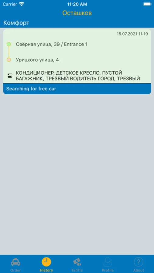 "Comfort" is the taxi ordering service in Ostashkov town of Tverskaya oblast' of Russia.