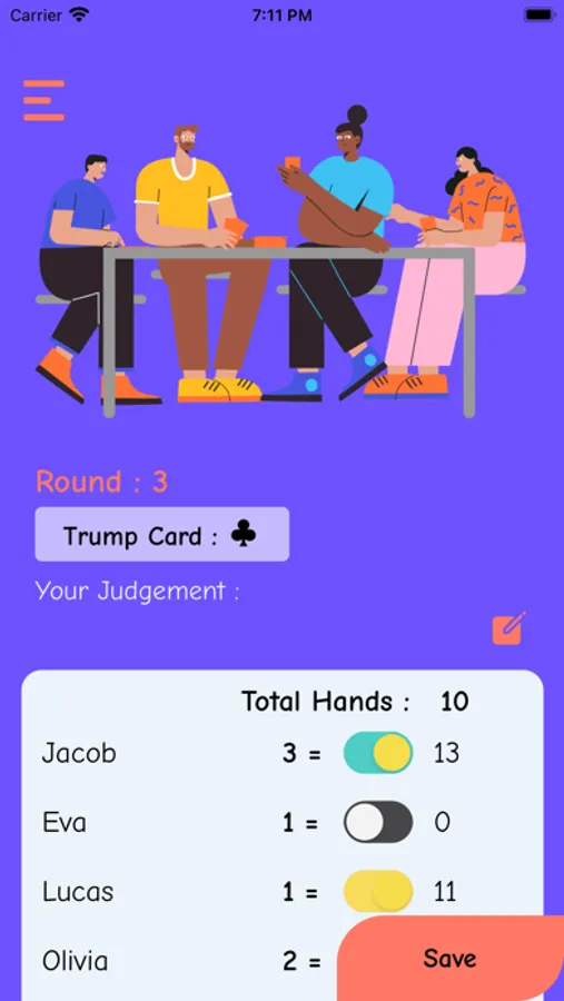 Judgement(Kachuful) is the easiest way to organise your game points with your family and friends.