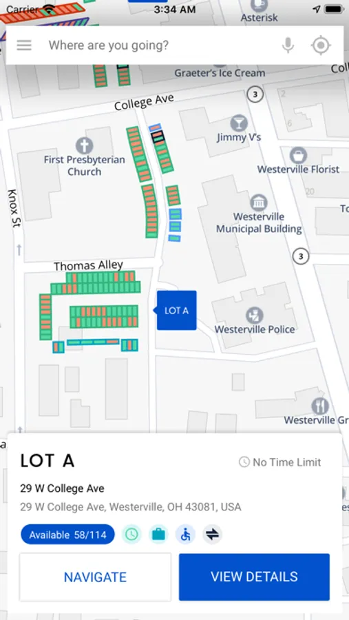 - Westerville Parking will instantly load parking information of areas around your search destination.