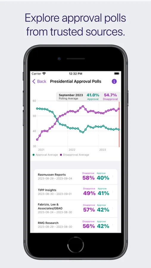 Access Reliable Polls: Understand public sentiment with presidential approval polls sourced from the respected platform, FiveThirtyEight.
