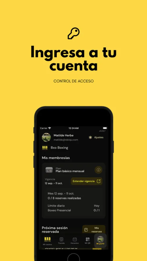 La versión para dispositivos IOS de BXO te permitirá acceder rápidamente a tu perfil, reservar tus clases y ver el trabajo del día de tu centro deportivo.