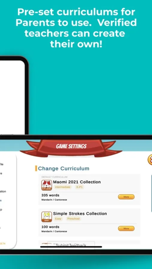 Track what your kid remembers and what they still struggle with in the parent account. Our teacher mode allows tutors to customize their own curriculum to accommodate different levels. Support your kid in their journey to learn their first 400 Chinese characters and over 1500 phrases with Maomi Stars!