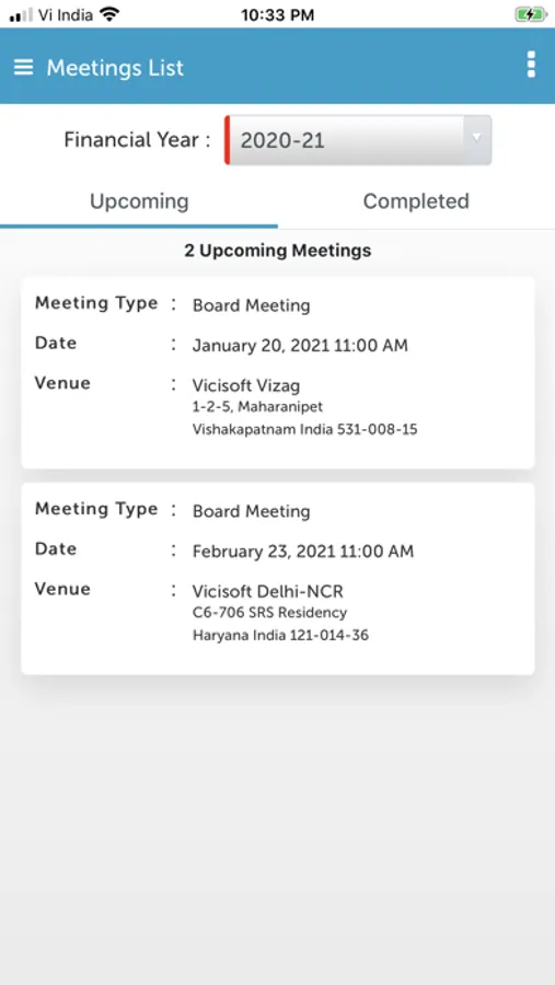 Calendar-based scheduling of board meetings with statutory requirements like quorum, notice period, voting rights, etc.