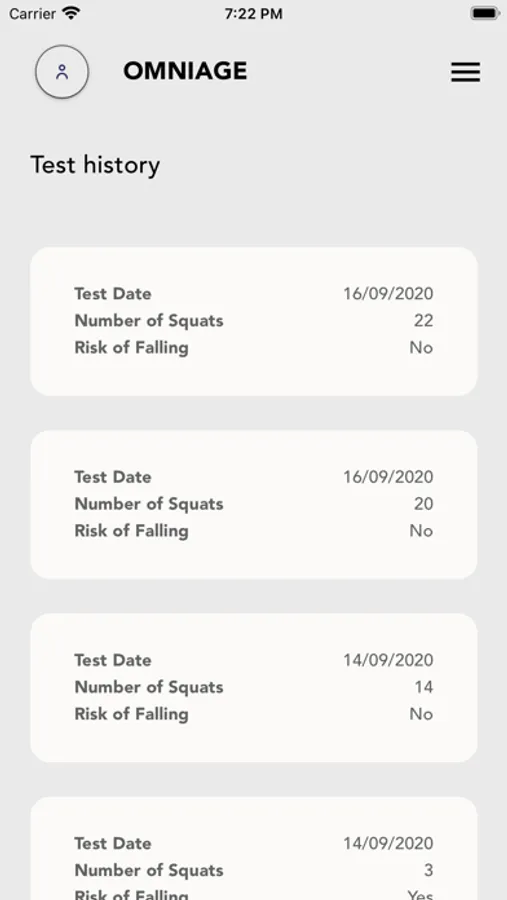 Dates of falls can be entered in the Omniage app so that events can be tracked.