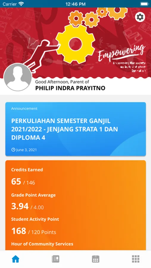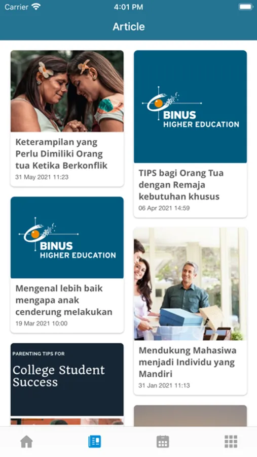 BINUS Mobile for Parent is simply an all in one mobile app that will enhance parent engagement in Bina Nusantara by providing easier information access. By utilizing BINUS University Mobile for Parent, Parent will be able to access relevant information for their child's activity in Bina Nusantara.