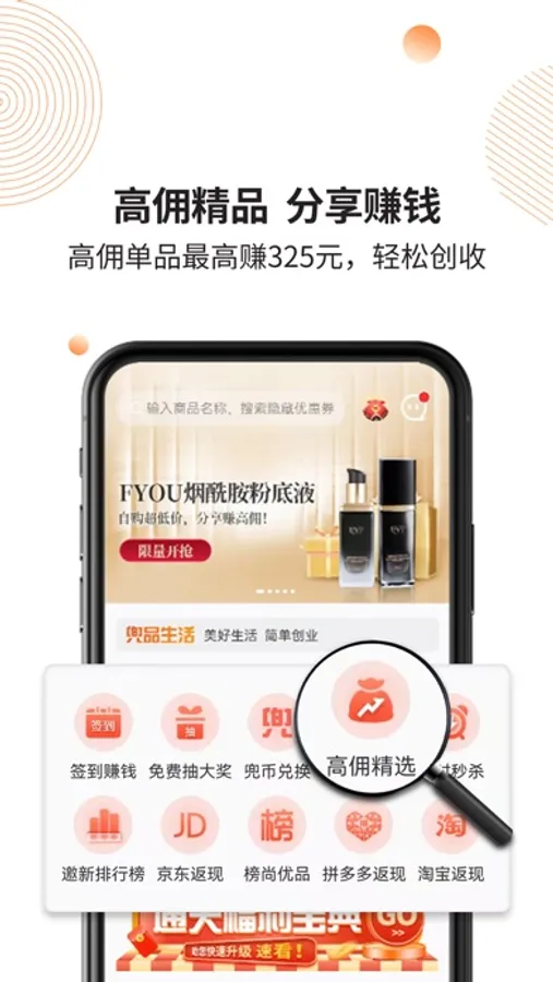 兜品生活是一款省钱省心省力综合性领券返利APP,是拥有优质的供应链系统,海纳全网优质品牌商品,大额抵扣、吃喝玩乐行覆盖全域生活,以用户为中心,共谋全面发展的社交电商平台。