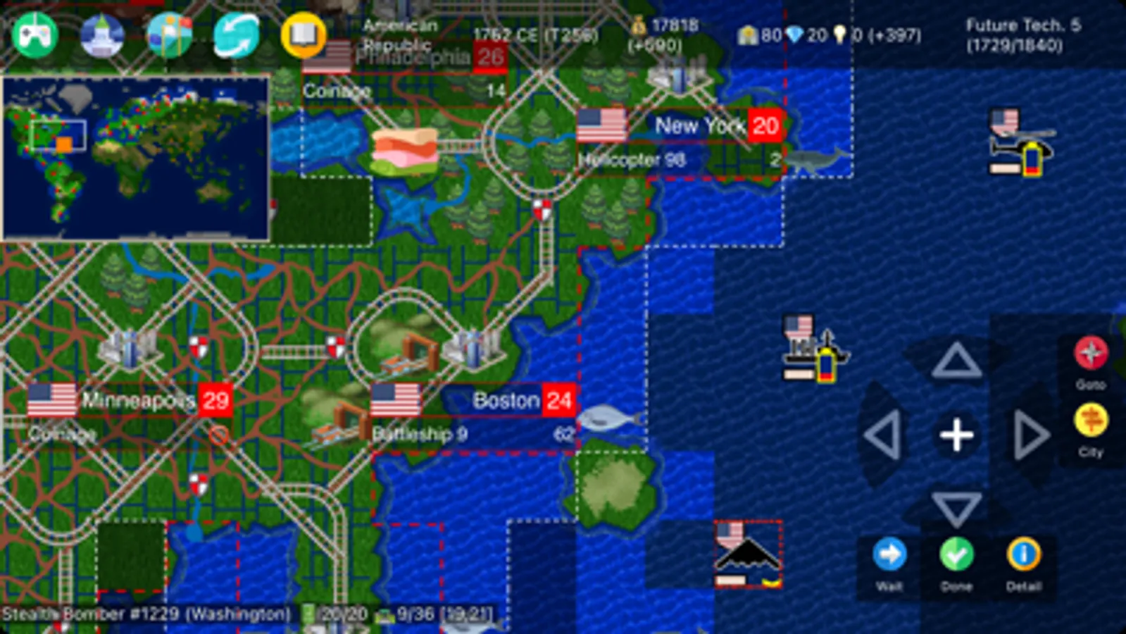 The simulation strategy logic and user interactive concept are inspired by the classic Civilization game from Sid Meier. The game have used graphics, music, map, and text materials that come from the public domain licensed by Creative Commons License or General Public License.