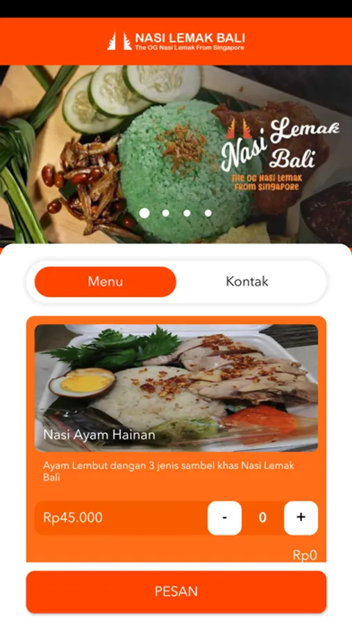 Aplikasi untuk memesan makanan di Nasi Lemak Bali