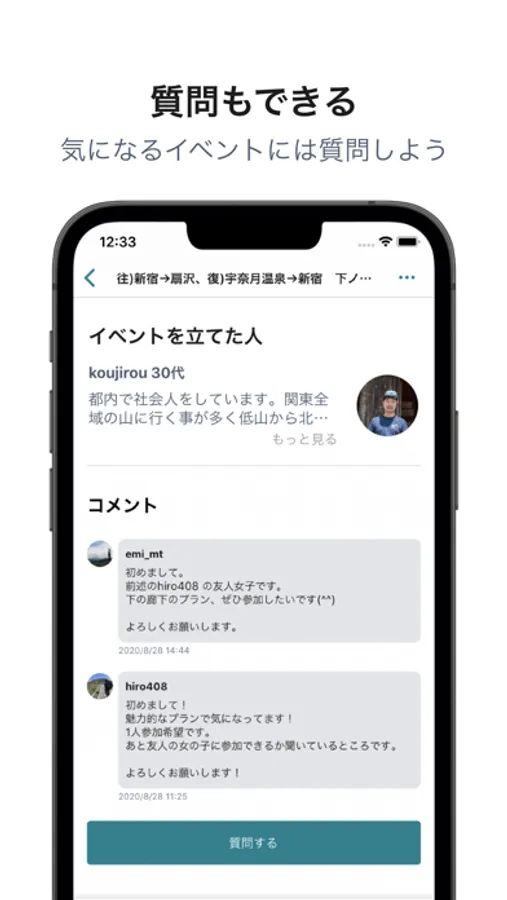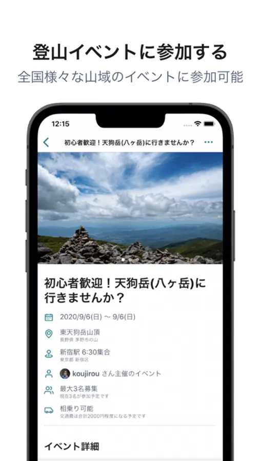 現在地から近い募集、行きたい山周辺の募集を探すことができます。