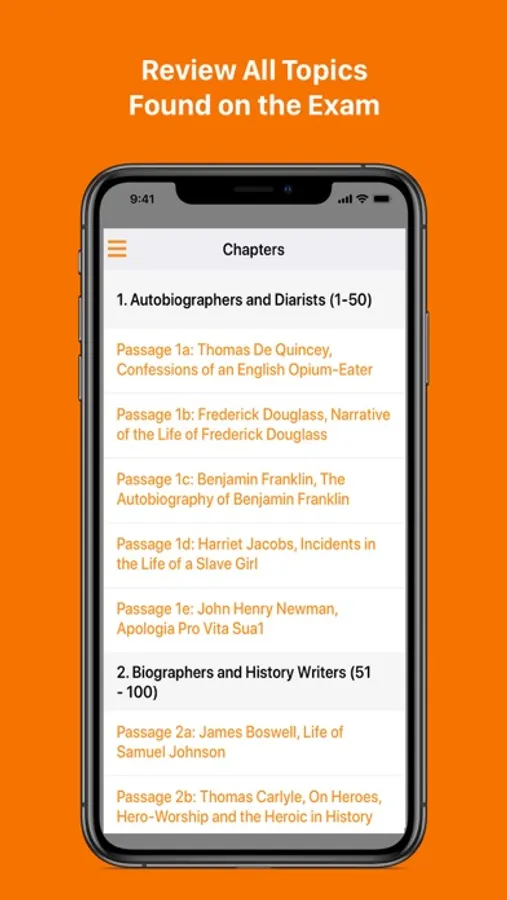 This free application includes all questions in Chapter 1 - Autobiographers and Diarists (1-50). The remaining 450 questions are available through an in-app purchase of $15.99.