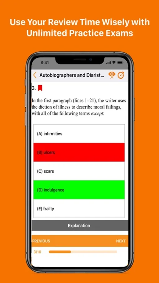 -In the Timed Exam mode, time yourself and review the answers after the time is up.