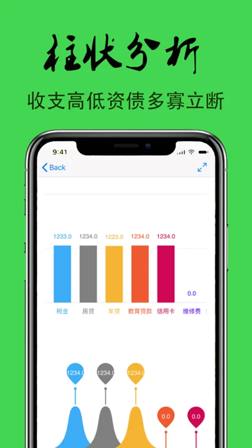 更有柱状分析图帮你理解你的现金流和资产负债情况,