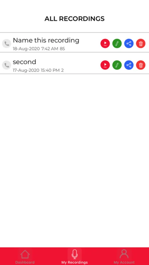 - Organize your call records. You can view list of files with order by time, by names.